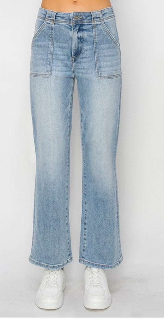 High Rise Ankle Flare Patch Pocket